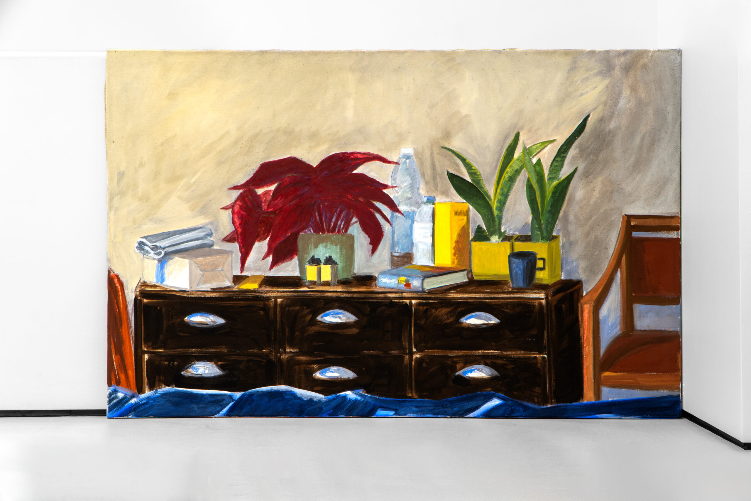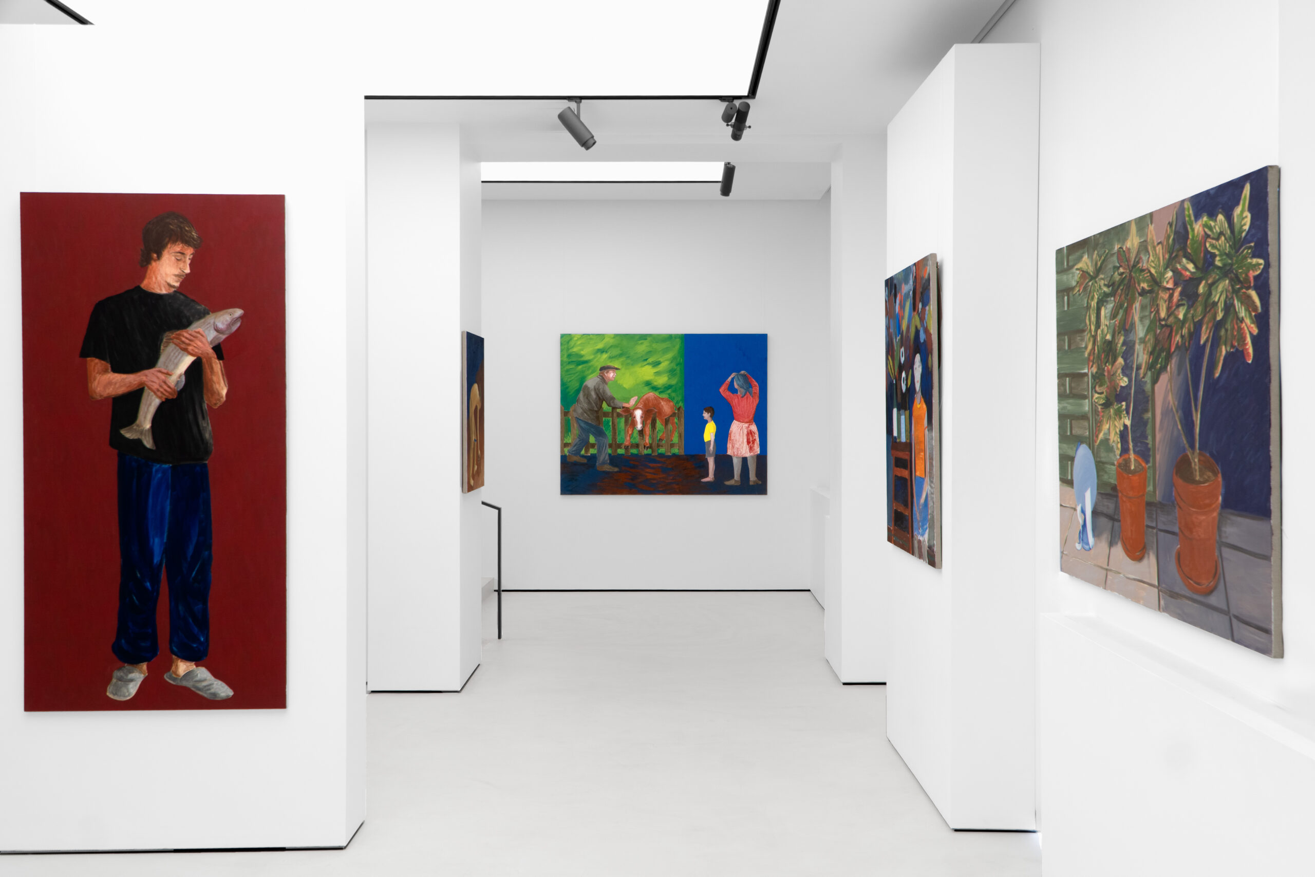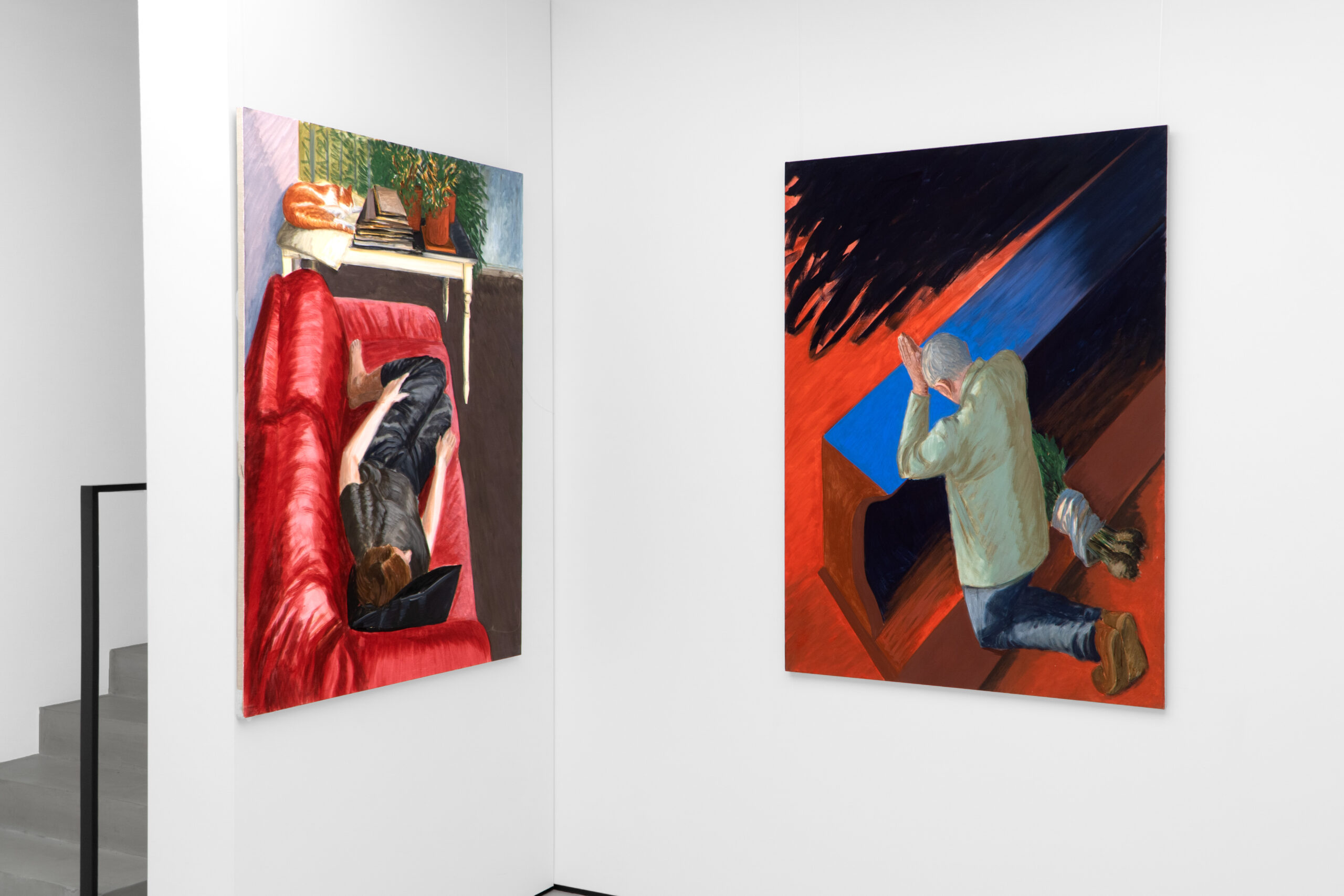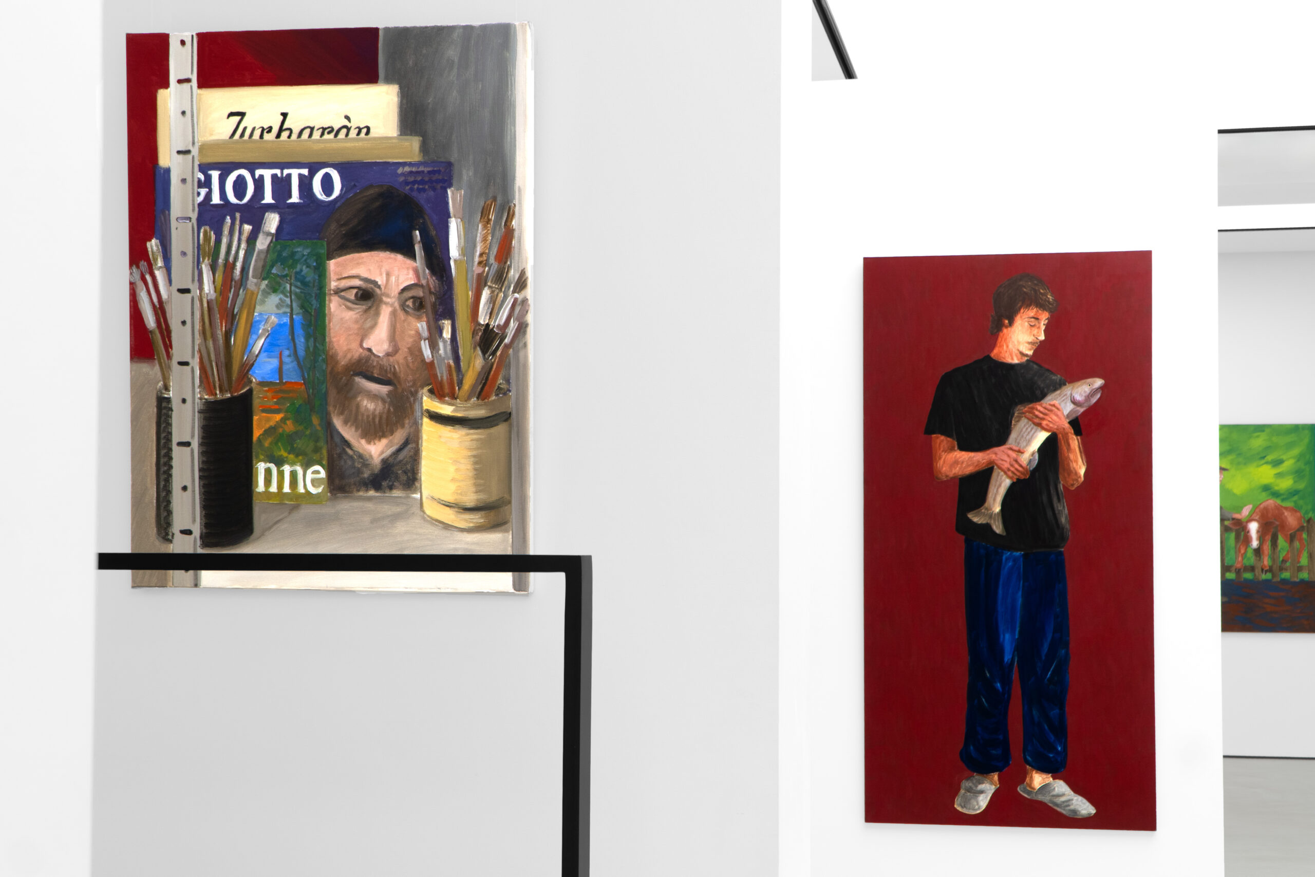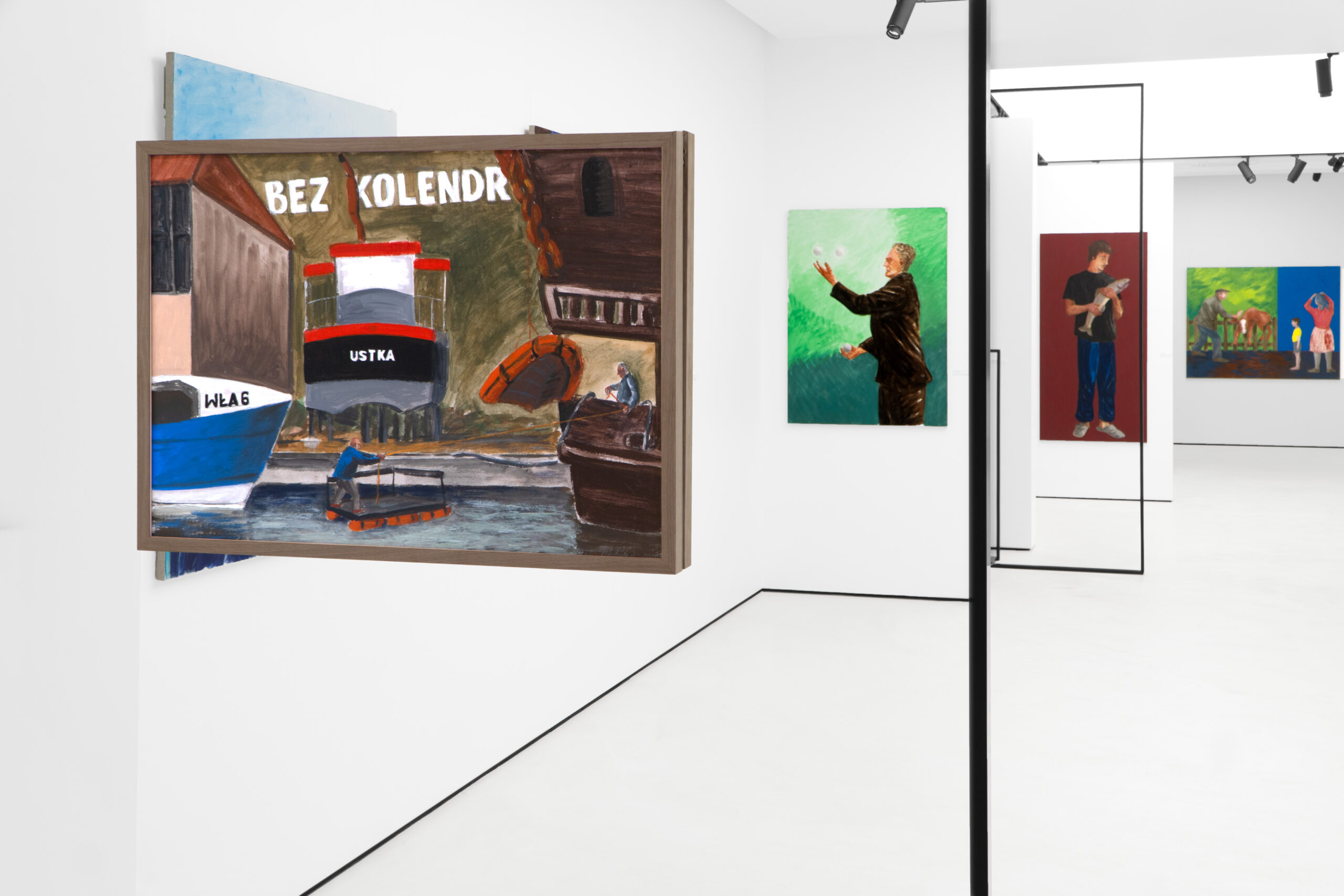 What is Jarosław Modzelewski saying about himself with his choice of a phrase from a poem by the Baroque Sarmatian poet Wacław Potocki (1621–1696) as the title of the exhibitions marking his seventieth birthday at the SZOKART gallery in Poznań and the BWA Art Gallery in Wałbrzych? ‘Nothing has a covenant with time’, Potocki writes – a reference to the ephemerality and fragility of life that strikes the vanitative tone so characteristic for the philosophical currents of his age. But how does that Baroque quality, so aptly captured in words, express itself in Modzelewski’s painterly language? Why do I describe him as a ‘painter of Baroque places’, as I suggest in the title of this text? The work of this artist, who has been an intensely visible presence in the firmament of art since his membership of the Warsaw-based Gruppa, founded in 1983 with Ryszard Grzyb, Paweł Kowalewski, Włodzimierz Pawlak, Marek Sobczyk, and Ryszard Woźniak, has sailed through the decades unerringly commenting both socio-political and meta-artistic reality. For Modzelewski is a painter who not only operates on the threshold of the dynamically changing historical conditions, but also dives deep below the surface of the history of painting, dialoguing with great figures from the past such as Vincent van Gogh, Edvard Munch, Casimir Malevich, and Artur Nacht-Samborski, and persistently asking about the potential of art about art, art which ponders its own condition. Mieke Bal (b. 1946), a Dutch theoretician of culture who takes an intertextual perspective, has noted that concepts do not have meanings cast in stone, but are by their nature dynamic: ‘While groping to define, provisionally and partly, what a particular concept may mean, we gain insight into what it can do.’ Intersubjectivity can help us to interpret this doing, or impact, in relation to works of art, literature, or philosophy, thus also to Modzelewski’s painting. So what can the Baroque, as an interpretative concept, do when it is applied to an in-depth review of this artist’s recent and new paintings? Indeed, how are terms such as ‘Baroque’ even to be understood today if they do not refer only to a historical epoch that fell chiefly in the seventeenth century and was characterized by florid decorativeness and a dynamism and dramatism of forms? After all, the term ‘Baroque’ itself likewise has no covenant with time, and undergoes changes. The ‘Baroque’ may indeed be treated not as a historical and stylistic epoch, but as a particular way of experiencing and conceptualizing the world, one that is reflected in, say, the modern functioning of the body and the sensuous practices of abstraction. The French philosopher Gilles Deleuze (1925–1995), in his book examining the philosophy of Gottfried Wilhelm Leibniz (1646–1716) through the prism of the fold, saw in the Baroque a way of comprehending the complexity and dynamics of the world via an analysis of folds, which twist and turn in space and time. The fold is the supreme principle of the Baroque, which may be construed not only literally, but also metaphorically, as all kinds of pleads, creases, and passages between a multiplicity of worlds; the folding process itself, however, never ends. Deleuze further analyses one of the fundamental models organizing the Baroque paradigm and Baroque thought: ‘What is Baroque is this distinction and division into two levels or floors… the Baroque contribution par excellence is a world with only two floors, separated by a fold that echoes itself, arching from the two sides according to a different order.’ Among the artists whom Deleuze classifies as Baroque painters are Paul Klee, Jean Dubuffet, Jean Fautrier, and Jackson Pollock; he traces in their works diverse incarnations of Baroque places divided into two levels, and varied forms of functioning of the fold. He also adds a statement that in my intersubjective opinion also harmonizes superbly with Modzelewski’s oeuvre: ‘For ages there have been places where what is seen is inside: a cell, a sacristy, a crypt, a church, a theater, a study, or a print room. The Baroque invests in all of these places.’ Modzelewski’s attentive eye loves to peer into places like these. He also frequently places the heroes of his painted stories in situations where they are on a threshold, or at the intersection of inside and outside – as if between these two floor levels, divided by various types of folds. In his compositions entitled After Communion (2008), Two Kneelers (after Graham Greene) (2024), and Kneeler (with Celeriacs) (2024), we are in a church, observing from a distance a priest and some people who have just partaken of the host, or we are ‘hovering’ in the air as if levitating above the praying figures. Thus Modzelewski is developing a truly Baroque concept in the very spatial structure of these compositions, and, moreover, is taking us into places occupied by the Baroque and presenting the two floors of reality: the physical and the metaphysical. In his composition Mr Bronisław Wojciechowski’s Exhibition in the Zdrojowa Café in Lądek Zdrój, in turn, we are in a café where a show of paintings by a local artist is underway, and we are seeing it through a glass wall, as if we could not go right inside. Modzelewski, then, employs spatial structures that according to Deleuze’s categories are Baroque places by their very nature (a church, an exhibition hall), and proceeds to fold them in such a way that the tension between the interior and exterior is clearly and expressively defined. In the 2025 painting Devastated Heritage, Modzelewski shows two male figures occupying the fold between, depicted literally in a kind of passageway, as if between a landscape and a domestic interior – or perhaps it is not a landscape at all, but photo wallpaper featuring a blood-red forest landscape? The phrase used in the title is something the artist overheard somewhere and ins