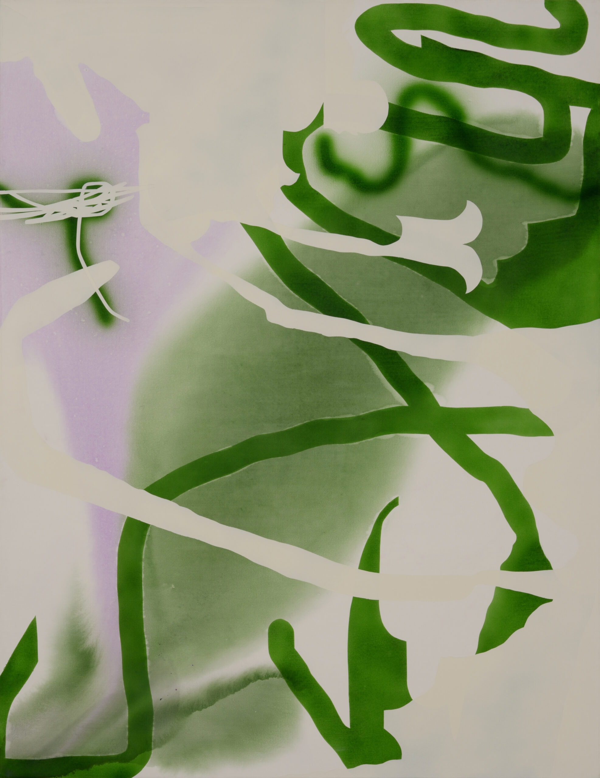 Kompozycja oparta na napięciach między gestem a strukturą, budująca rytm poprzez relacje koloru.