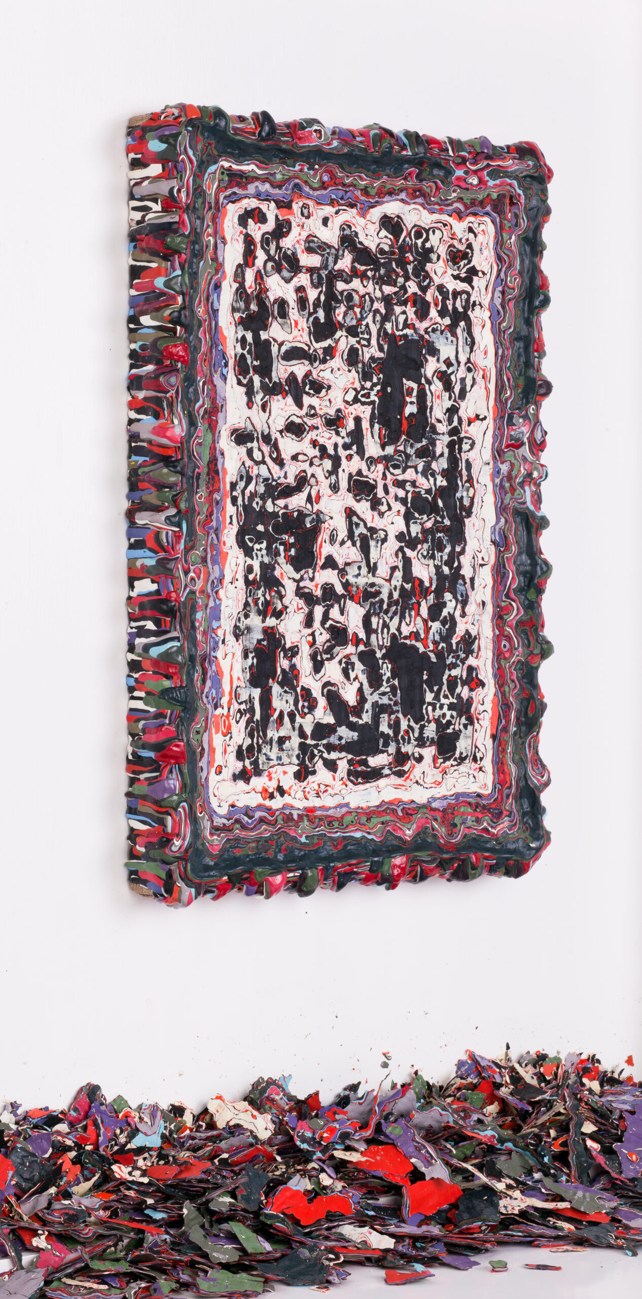 Praca oprawiona w biała gablotę z szybą