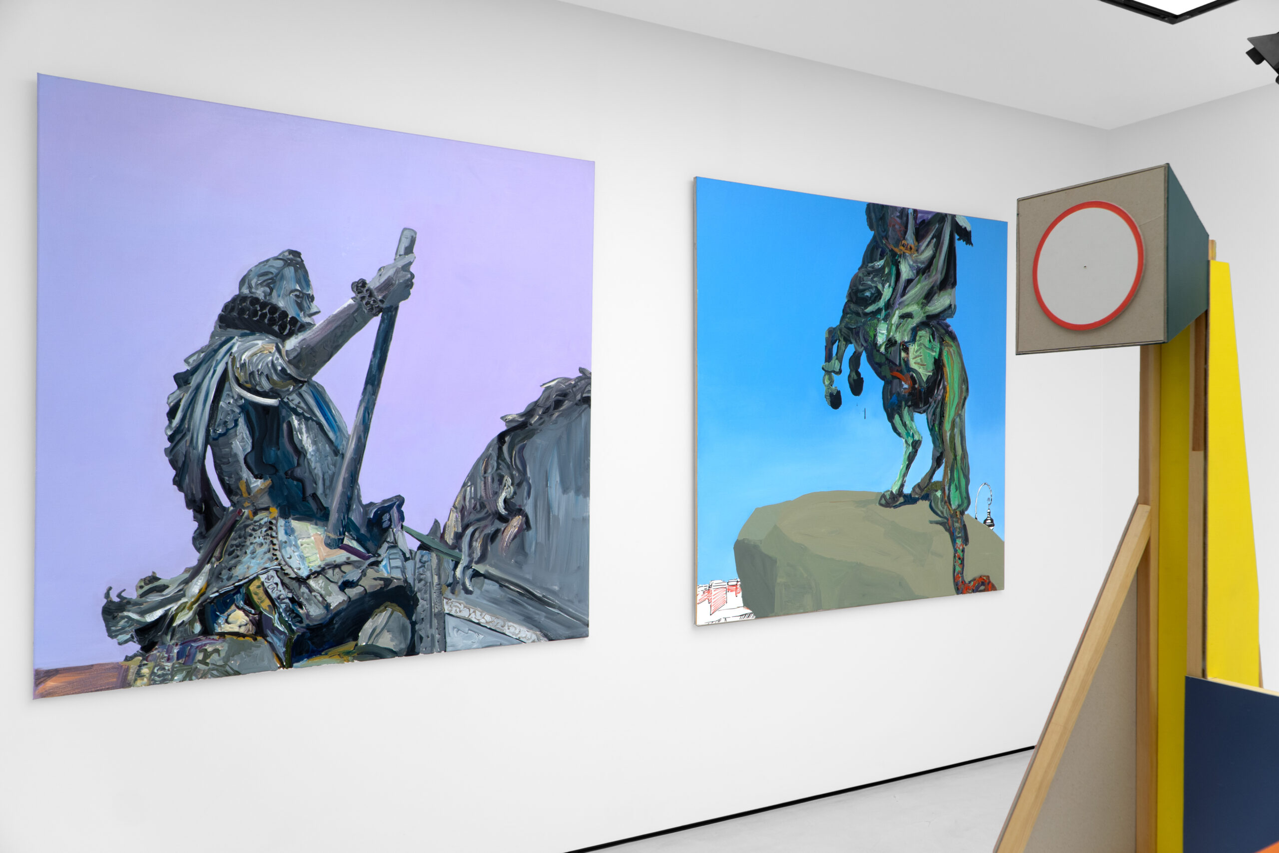 Toksyczne i władcze męskości komentuje w swojej serii „Ex-heros” również Jakub Malinowski, który przedstawia pomniki konne, dedykowane postaciom władców, zwycięzców i zdobywców. Wspięte konie, postumenty i nierozpoznawalne męskie sylwetki utrwalone w formach pomnikowych nie emanują jednak patosem, lecz – dzięki strategii depersonifikacji, nietypowego kadrowania oraz fragmentaryzacji – wydają się być pozbawione swojej mocy czy odczarowane. Mimo że wciąż spoglądamy na nie z dołu, z żabiej perspektywy, nie wierzymy w ich heroiczną, przywódczą moc. Niepokoi jednak obecność trzech militarnych śmigłowców, które zdają się być sterowane gestem jednego z byłych bohaterów. Czyżby obrazy Jakuba Malinowskiego przestrzegały nas, że każdy czas ma swoich dyktatorów?