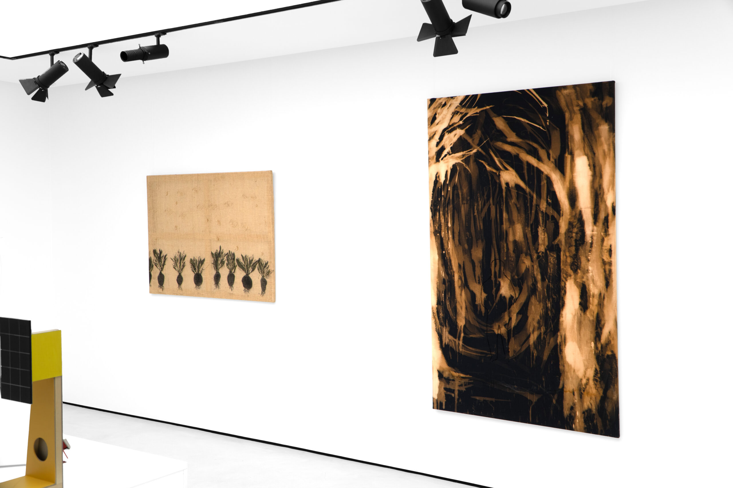 Malarstwo Sebastiana Krzywaka również serwuje nam światy, których nie jesteśmy w stanie jednoznacznie zidentyfikować – to obraz pod mikroskopem? A może przeciwnie – to widok z oddalenia? Fragment czy całość? Płótna przyciągają nas, aktywując liczne pytania i stymulując wątpliwości. To korzenie drzew? Jakiś świat podziemny? Może ryzosfera, w której impulsy symbiotycznie przepływają między korzeniami, roślinami, bateriami a grzybami? Ponadto kompozycja w czerni i szarościach dodatkowo kojarzy się z obrazem rentgenowskim lub ultrasonograficznym. Dzięki nakładaniu się na siebie warstw malowanych akrylem i aplikowanych na płaszczyznę sprayem motywy zyskują głębię, płynność i lekkość, co nadaje im żywotności znamiennej dla biomorficznej abstrakcji.