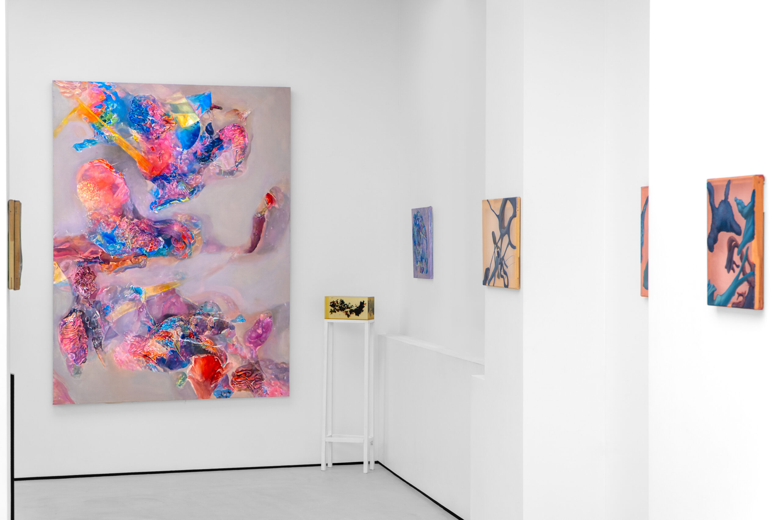 Inspiracje organicznością i abstrakcją biomorficzną, napięciami pomiędzy skalą mikro i makro są z kolei widoczne w malarstwie Anny Róży Kołackiej, Julii Królikiewicz i Sebastiana Krzywaka. Ta trójka zagłębia się w sfery zazwyczaj niewidoczne, rozwijając przed oczami osób patrzących nowe wizualne światy o uwodzicielskiej i fascynującej urodzie. Nasuwa się proste pytanie, czy to malarstwo przedstawiające czy raczej abstrakcja? – paradoksalnie siła tych twórczości polega na ich zawieszeniu pomiędzy i ambiwalencją.