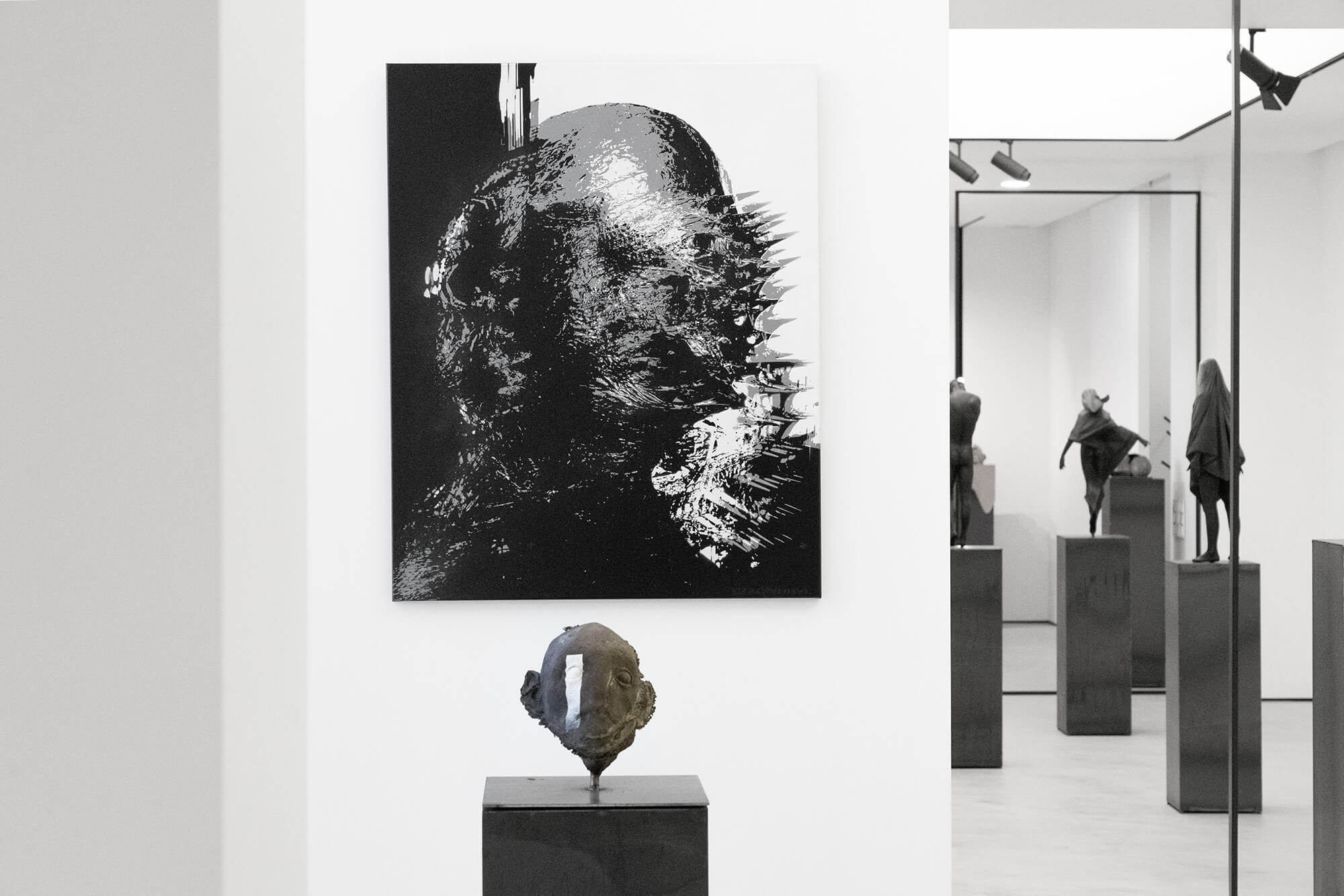 An honest and drastic yet incredibly captivating narrative by Tomasz Górnicki and Czarnobyl about pain and transience. The exhibition is the premiere of a joint project by two – seemingly distant – artists, with the starting point being the portrait mirror as an artistic tool for confronting existential unease and what we colloquially refer to as the dark side of human nature. This popular term can be an effective key to understanding the concept of Porträtspiegel, an exhibition that combines the world of sculpture with the phenomenon of stereotypical painting, where each medium and each of the presented works is a mutual mirror, and the reflections and tensions that emerge between them are nothing but new, never-ending contexts for the perception of the figurative essence of their creativity.