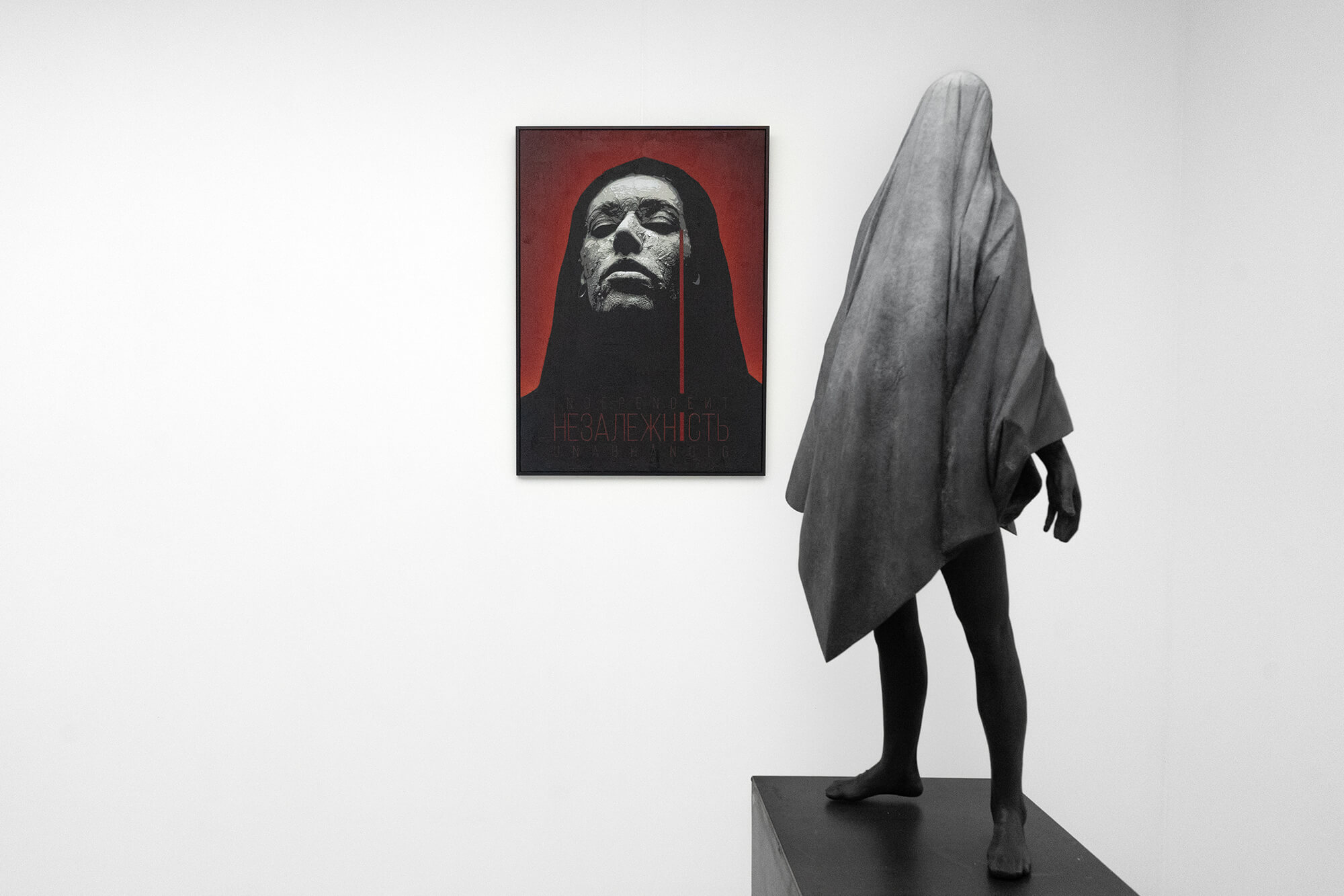 Czarnobyl, czyli Damian Terlecki, to jeden z najważniejszych na świecie artystów poruszających się w technice szablonu. Jego unikalny, kształtowany od końca lat 80’ XX wieku styl cechuje się nie tylko perfekcją techniczną, ale treściową bezkompromisowością i burzeniem zastanych wyobrażeń o wszystkim tym, co wokół nas. Czarnobyl uwielbia redukować, pomimo że w punkcie wyjścia obcuje z fotografią i portretem, a kunszt w tworzeniu szablonu pozwala mu odwzorowywać rzeczywistość wierniej niż zdjęcia. Prezentowany przez Czarnobyla świat jest bliski estetyce Górnickiego, przez co zyskujemy obietnicę pełnej symbiozy między rzeźbą a obrazem, a relacje między pracami i podjęta tematyka bywają na tyle bliskie, że można mówić o spójnej instalacji będącej czymś więcej niż koegzystencją dwóch artystów w jednej przestrzeni.